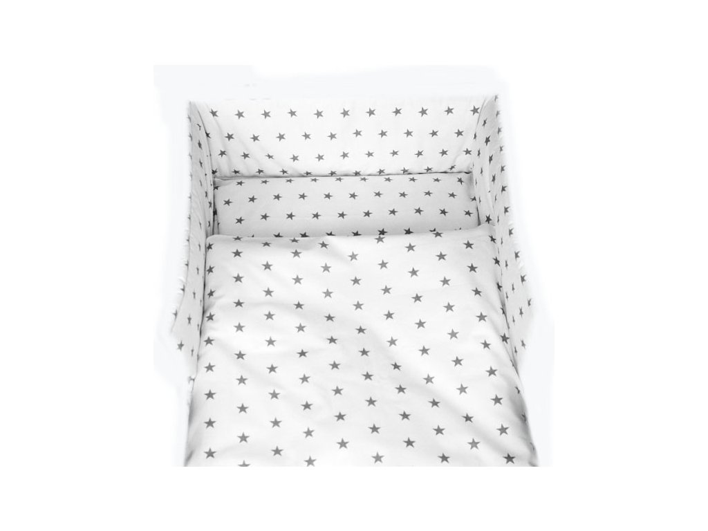 Neutrální souprava do dětské postýlky s mantinelem. Monnykids-kolekce Hvězdička šedá .