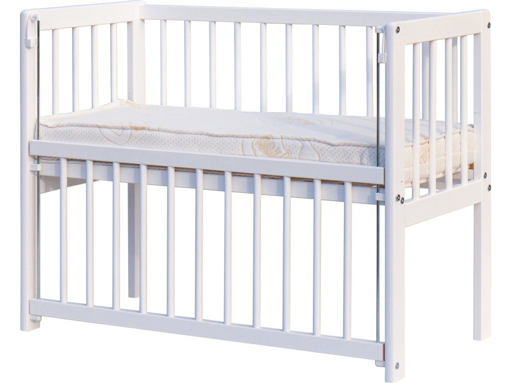 Dětská postýlka k posteli rodičů BABY Scarlett II - bílá (borovice), st. bok - 90 x 41 cm