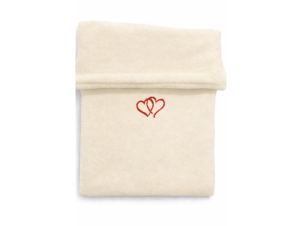Decentní výšivka dvou srdíček dodává dece něžný a nadčasový vzhled, díky kterému se skvěle hodí do každého kočárku, kolébky, košíku i postýlky.