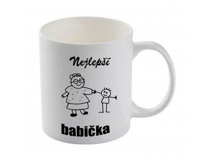 Hrnek je v bílé barvě s černým nápisem a barevným podkladem který si můžete zvolit