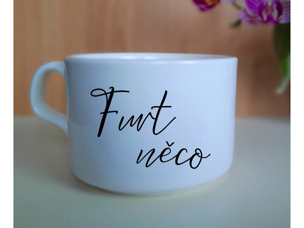 Hrnek může být doplněn jiným textem, text na pravé nebo levé straně a pod.