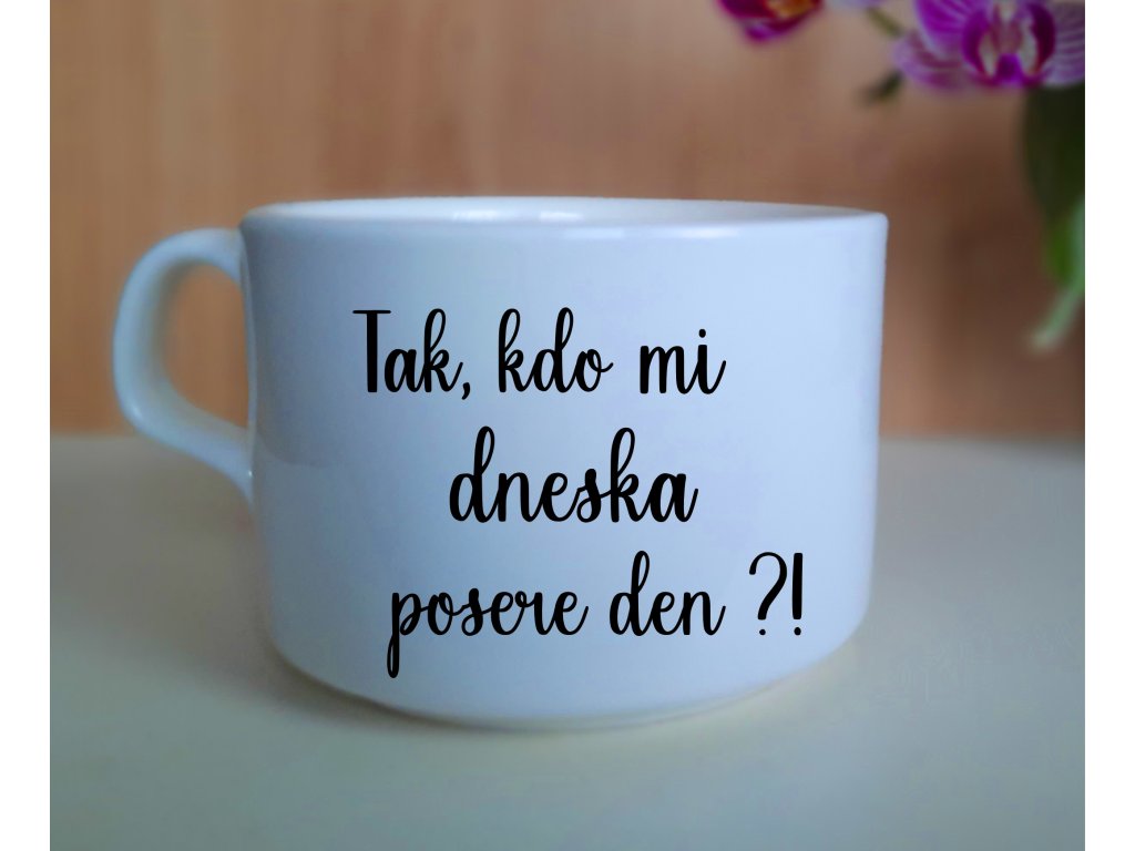 Šálek s veselým textem - Tak kdo mi dneska posere den?!