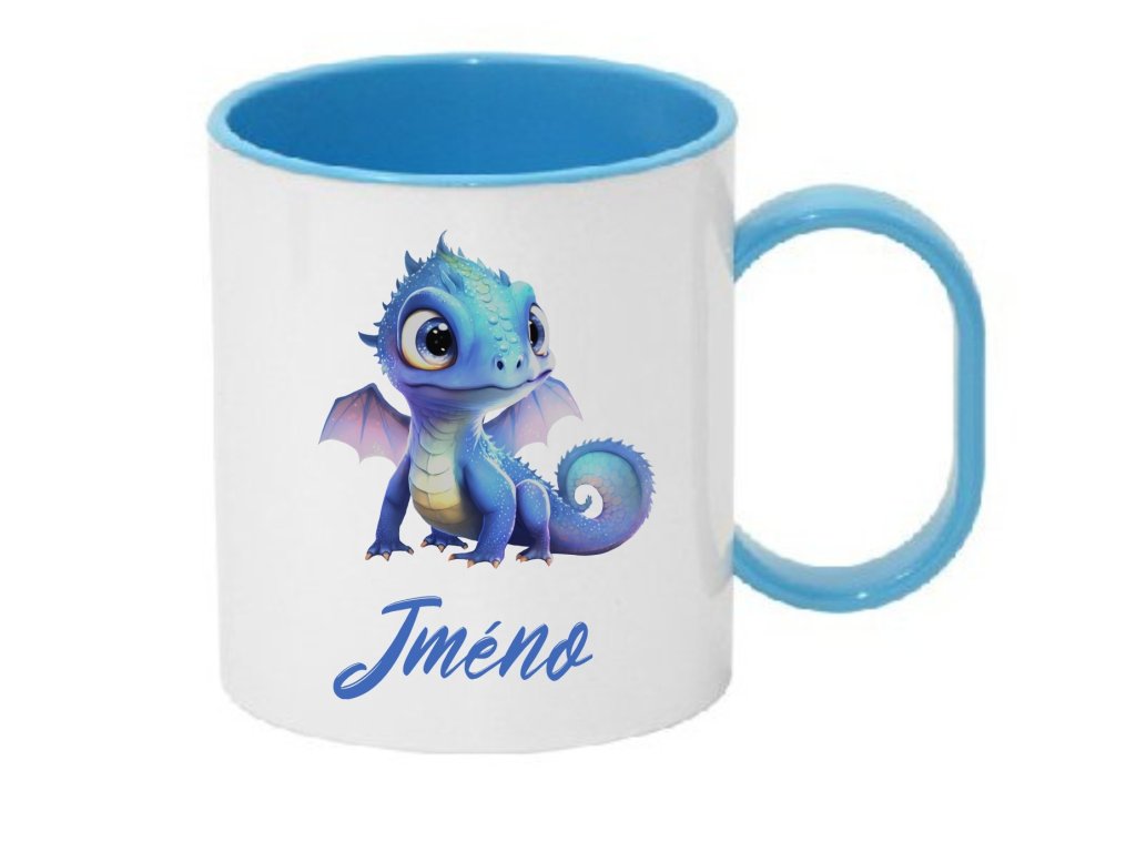 Dětský plastový hrnek, jméno na přání - Dráček modrý
