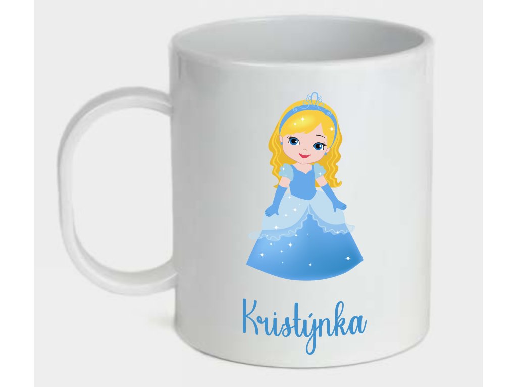 Originální polymerový hrnek 300ml s obrázkem princezny v modrém , se jménem dle Vašeho přání.