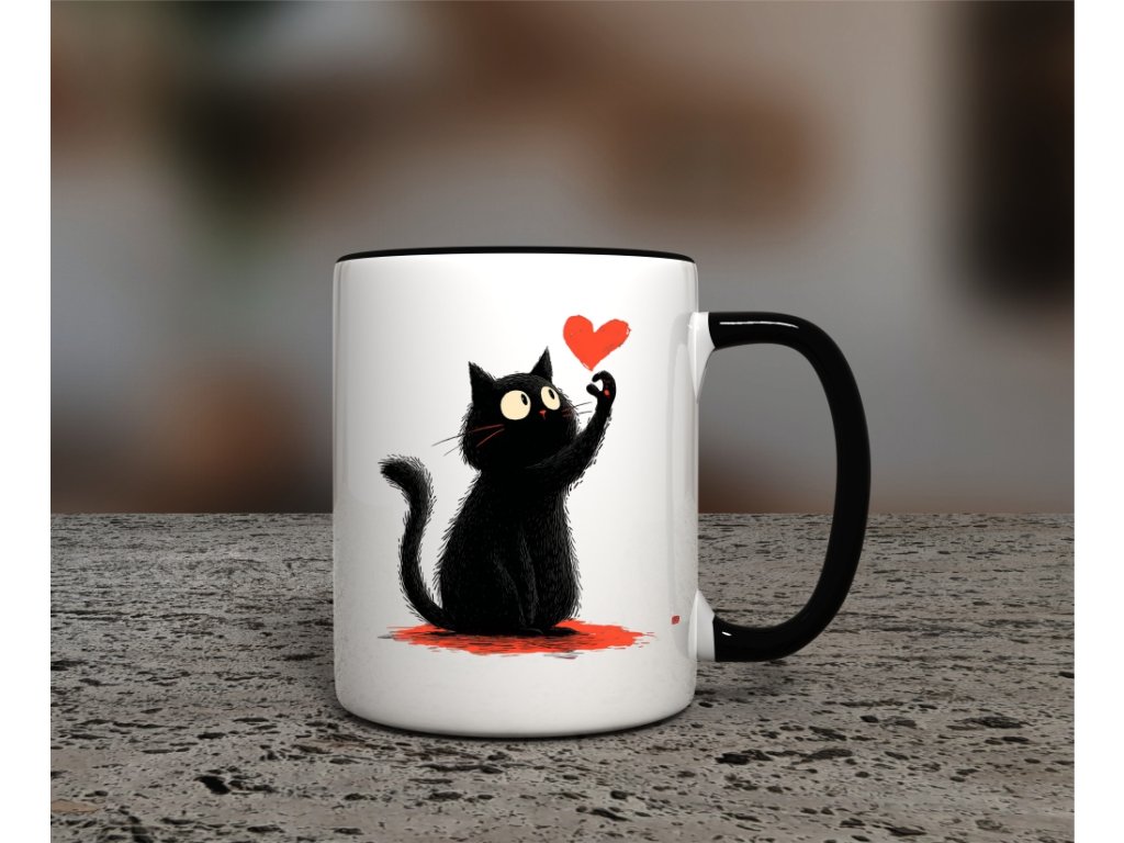 Hrnek s veselým obrázkem kocoura se srdíčkem