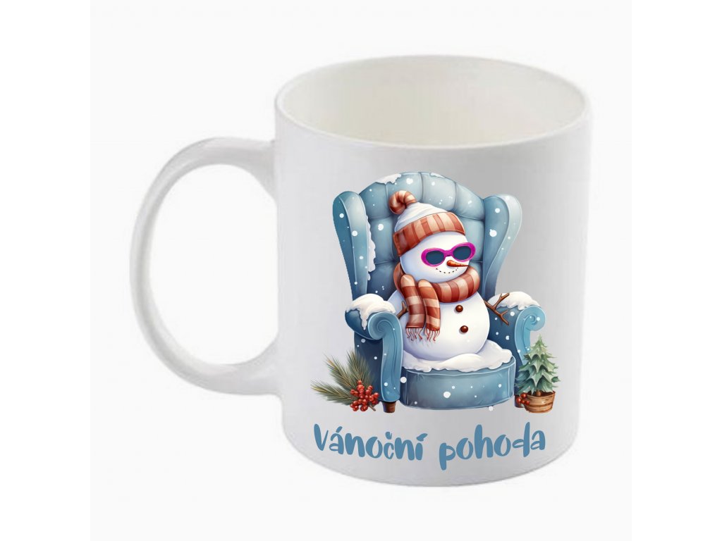 Originální veselý hrneček 330ml s Vánočním motivem sněhuláka a s textem "Vánoční pohoda"