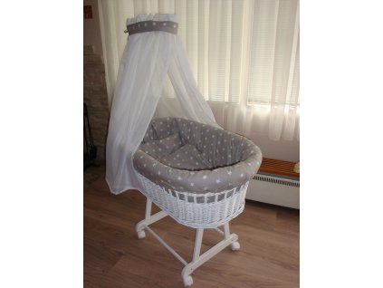 Proutěný koš na miminko s nebesy Hvězdičky bílo šedá - kompletní...