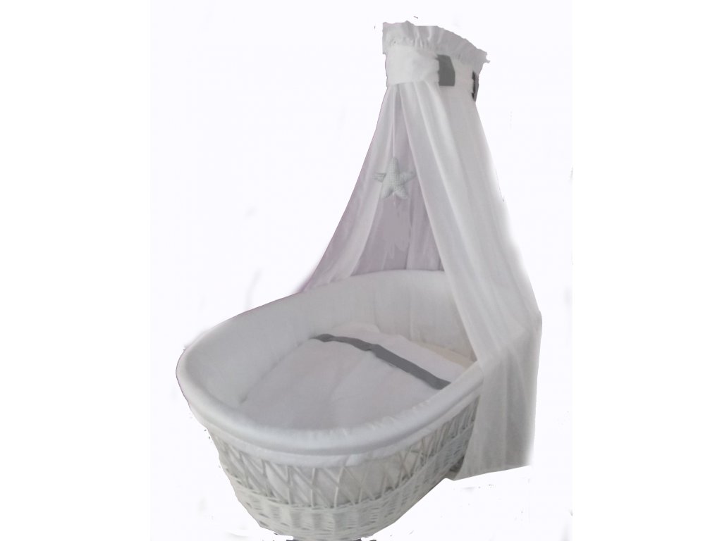 Proutěný košík na miminko s nebesy MARTIN - SCARLETT - souprava do košíku v...