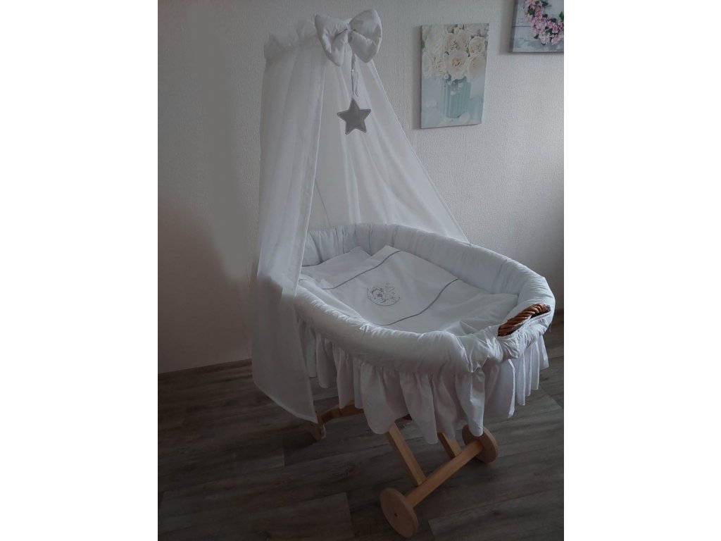 Proutěný koš na miminko s nebesy - Monnykids Hvězdičky bílo šedá