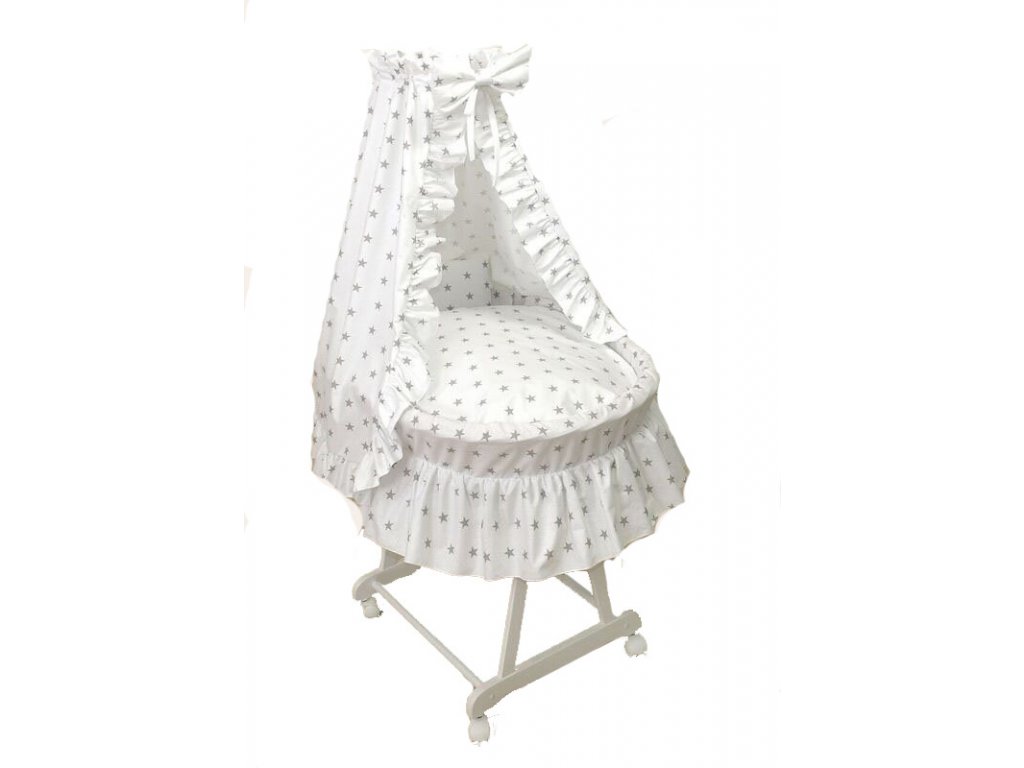 Košík pro miminko s kompletní výbavou šedé hvězdy na bílé