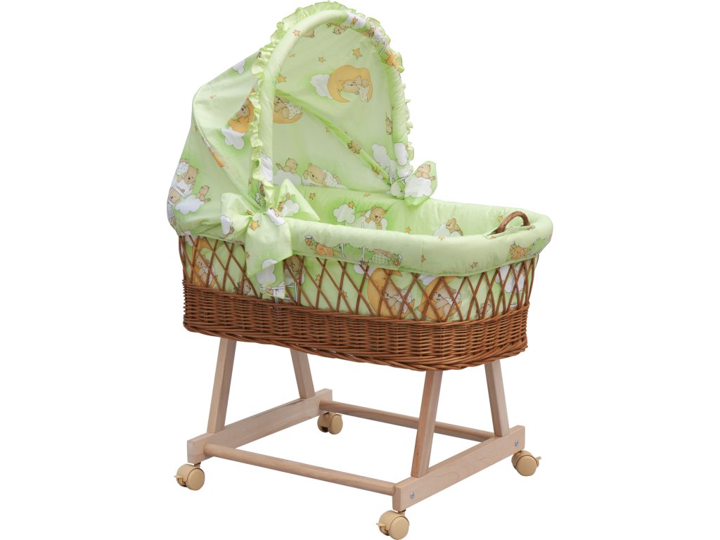 Proutěný košík na miminko s boudičkou Mráček - zelená