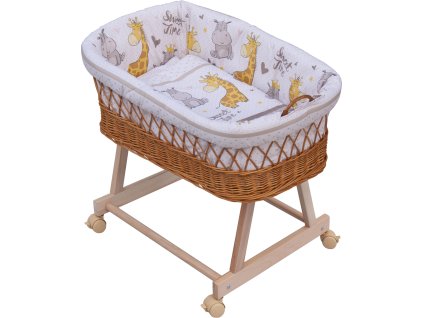 Velmi prostorný a originální proutěný koš pro Vaše miminko na pojízdném podvozku , kolečka jsou aretační , lze je zabrzdit.