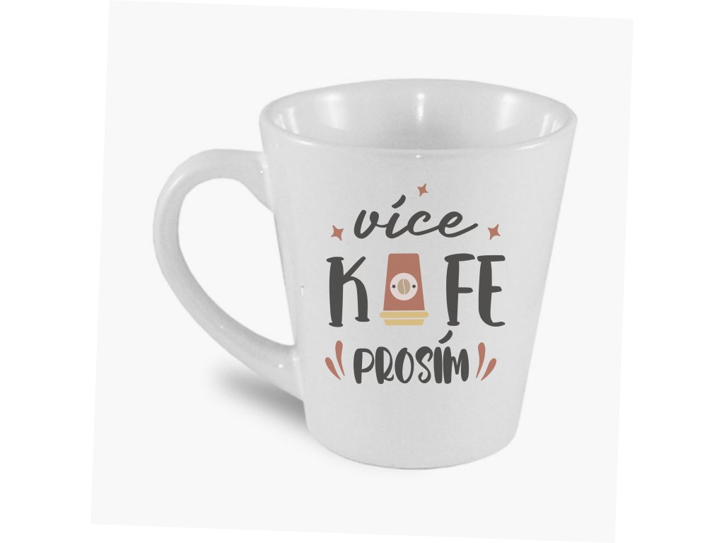 Originální kónický hrnek nejen na latté s potiskem - "více kafe prosím"