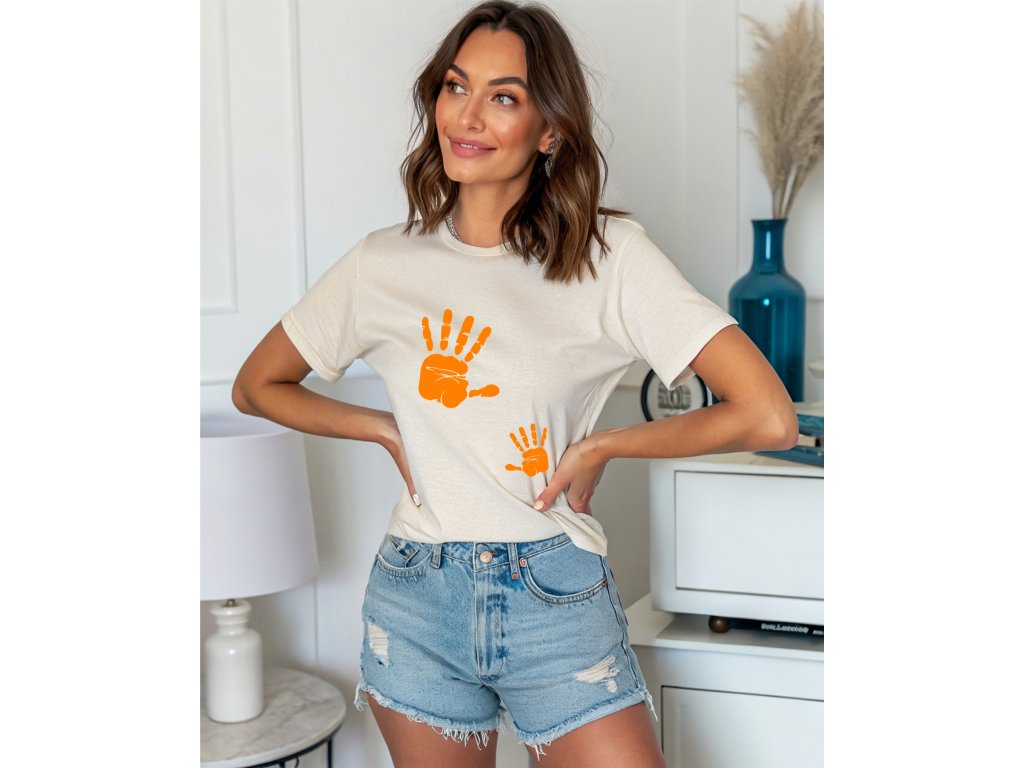 Originální nažehlovačka na textil z pružné PU nažehlovací folie s motivem otiskem dlaně - zakázková výroba.