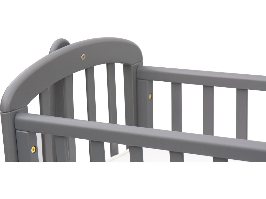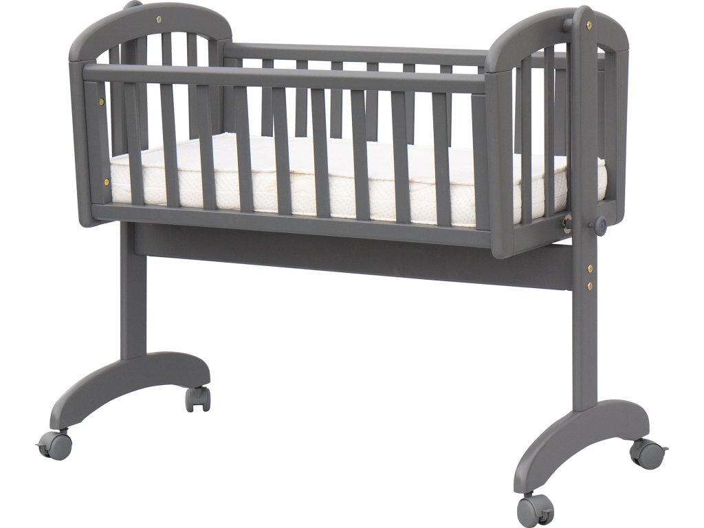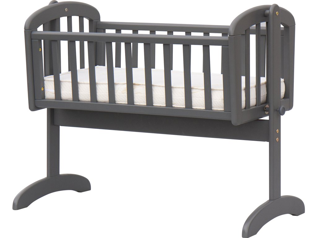 Krásná šedá kolébka z březového dřeva je ideální pro usínání miminek.