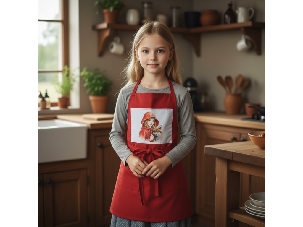 Oživte kreativitu vašeho malého kuchaře s touto kouzelnou dětskou zástěrou inspirovanou pohádkou o Červené Karkulce! Tento stylový kousek je ideální pro vaření, malování nebo jakoukoli kreativní činnost, kterou si vaše dítě zamiluje.