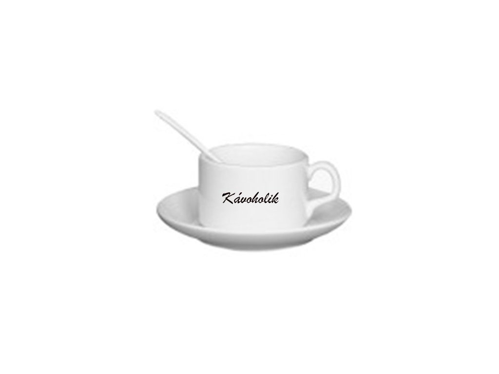 Kávový set hrneček , lžička a talířek - Kávoholik