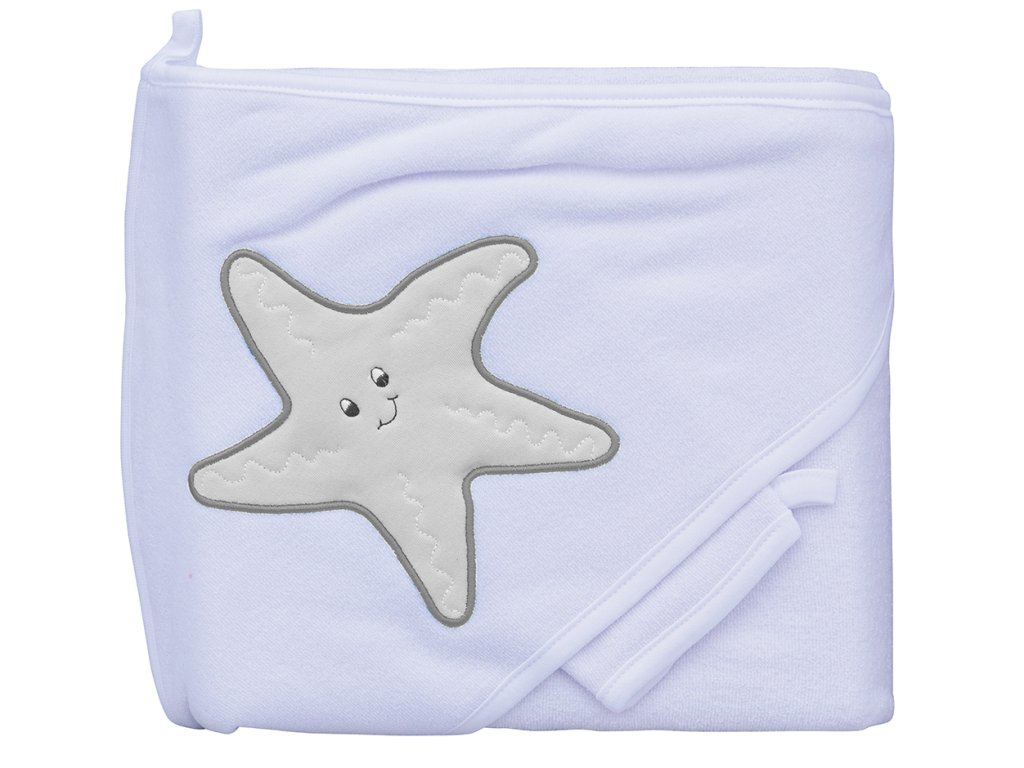 Ručník s kapucí pro Vaše miminko. Ručník je v sadě s žínkou a na ručníku je výšivka hvězdice