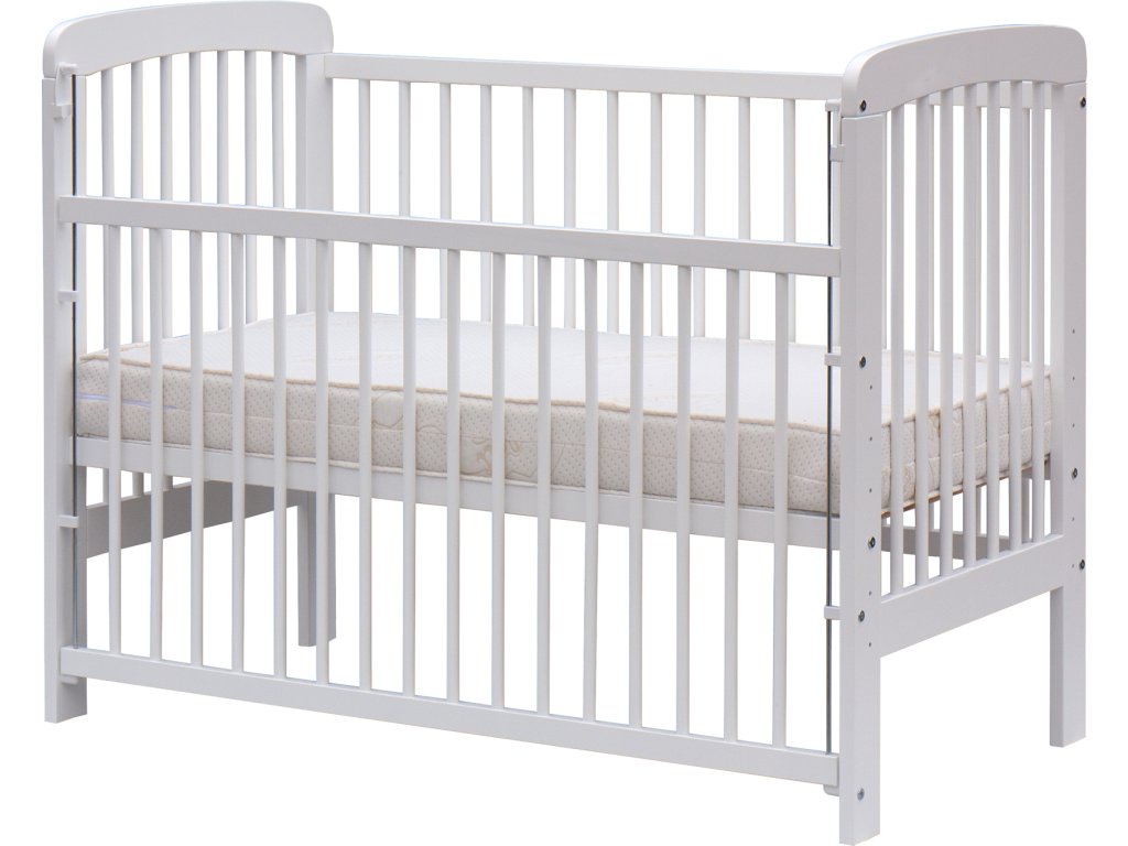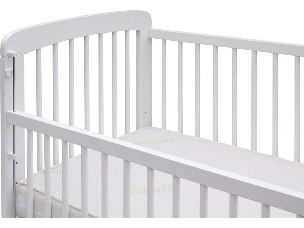 Dětská postýlka se stahovacím bokem - Scarlett MÍŠA (buk) - bílá 120 x 60 cm