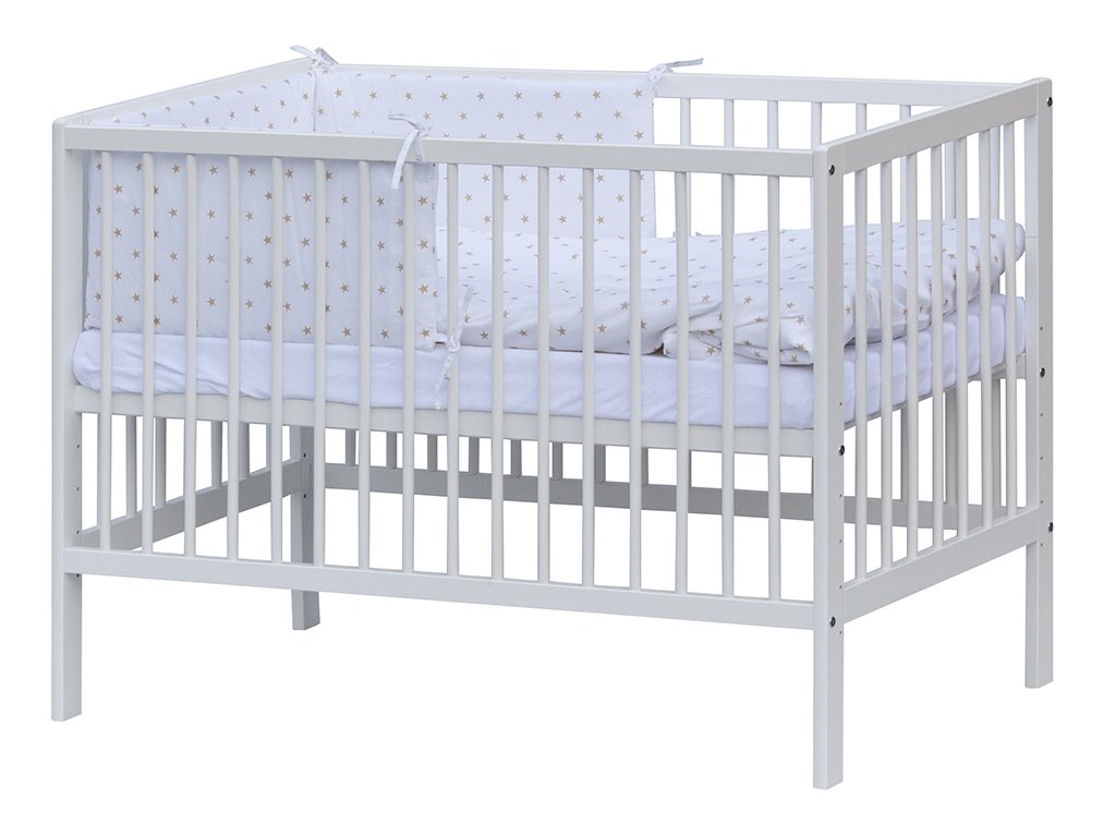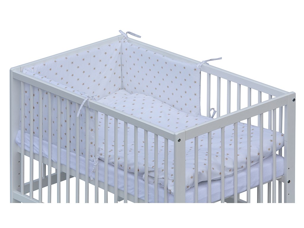 Dětská borovicová postýlka s kompletní soupravou povlečení a doplňků Hvězdička - béžová