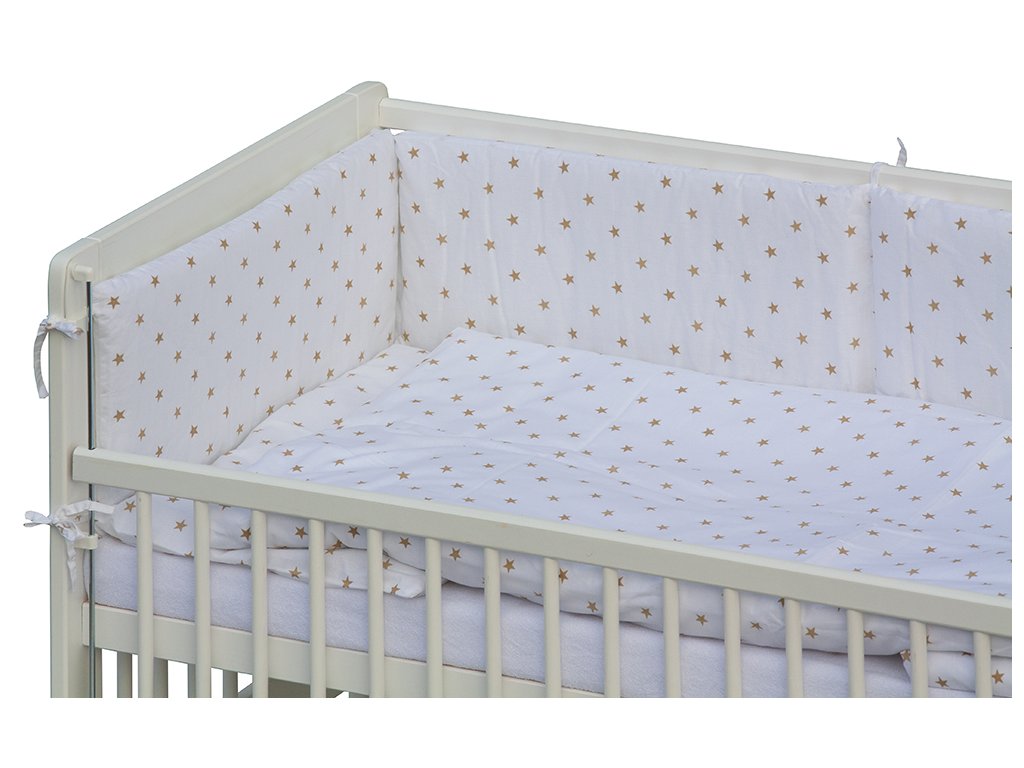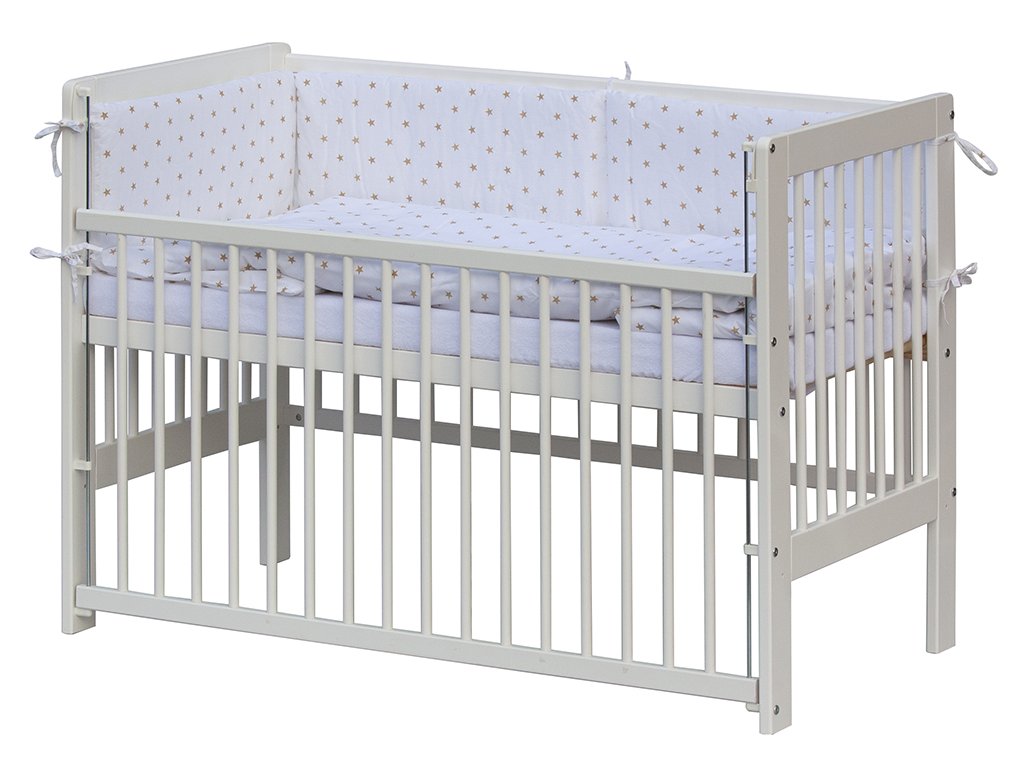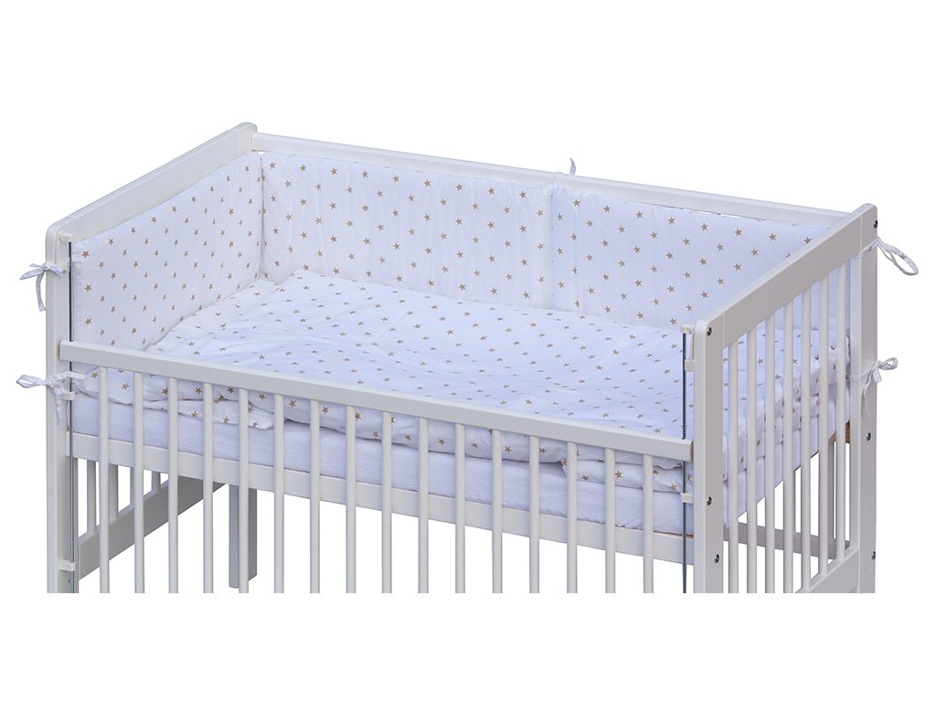 Dětská bílá postýlka se stahovacím bokem a kompletní soupravou povlečení a doplňků Scarlett Hvězdička - béžová