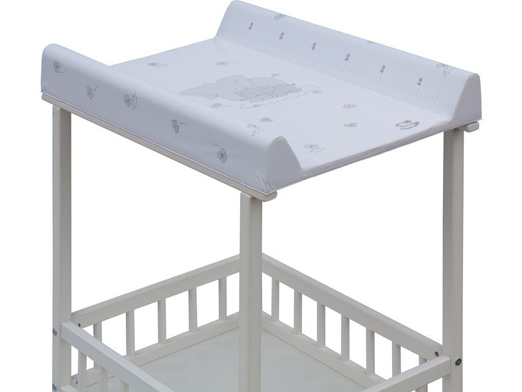 Přebalovací pult Scarlett Pája z masivního bukového dřeva v bílé barvě s přebalovací podložkou se slůnětem
