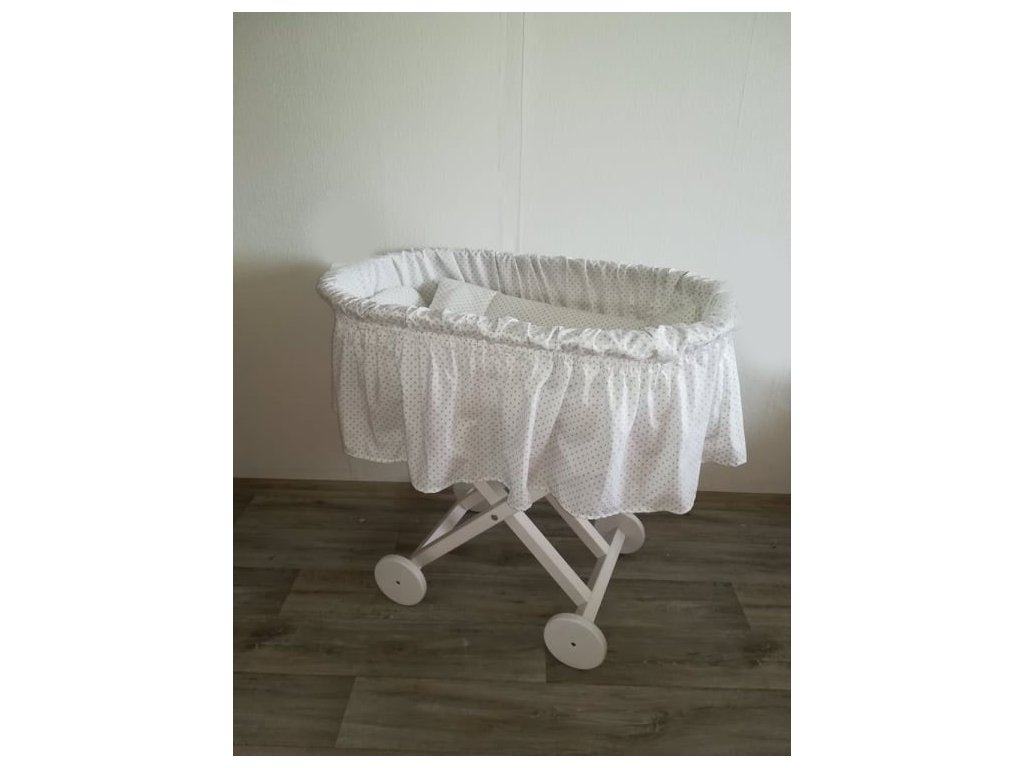 Originální proutěný koš na miminko s bílým podvozkem vyrobený v ČR. Proutěný koš (přírodní proutí) , stabilní podvozek a kvalitně ušitá souprava do košíku