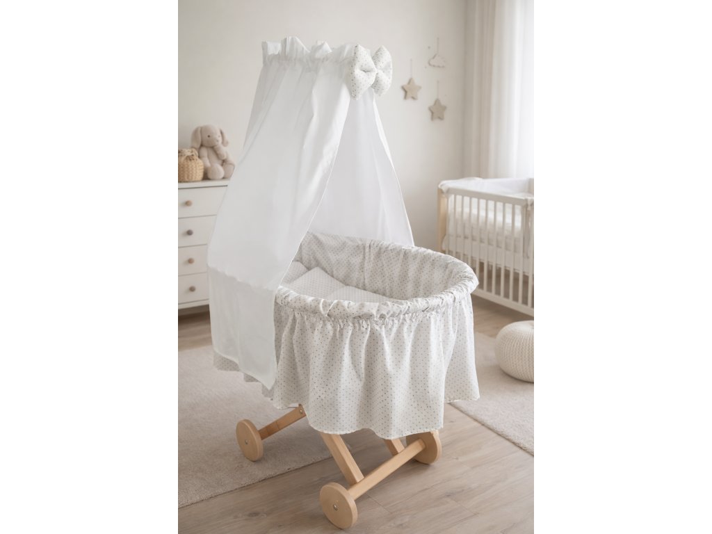 Proutěný košík s výbavou pro miminko - Puntík šedý na bílé