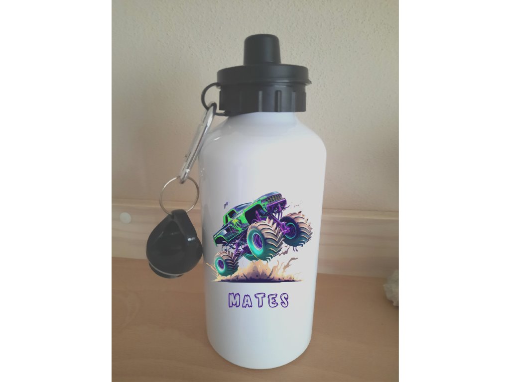Bílá ALU lahev 500ml se dvěma uzávěry s originálním obrázkem Monster Trucku a jménem dle Vašeho přání. Hliníková lahev je velmi lehká s odolným tiskem.