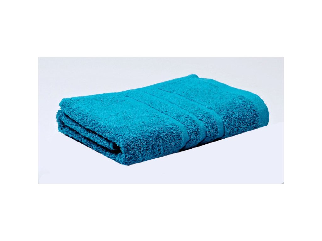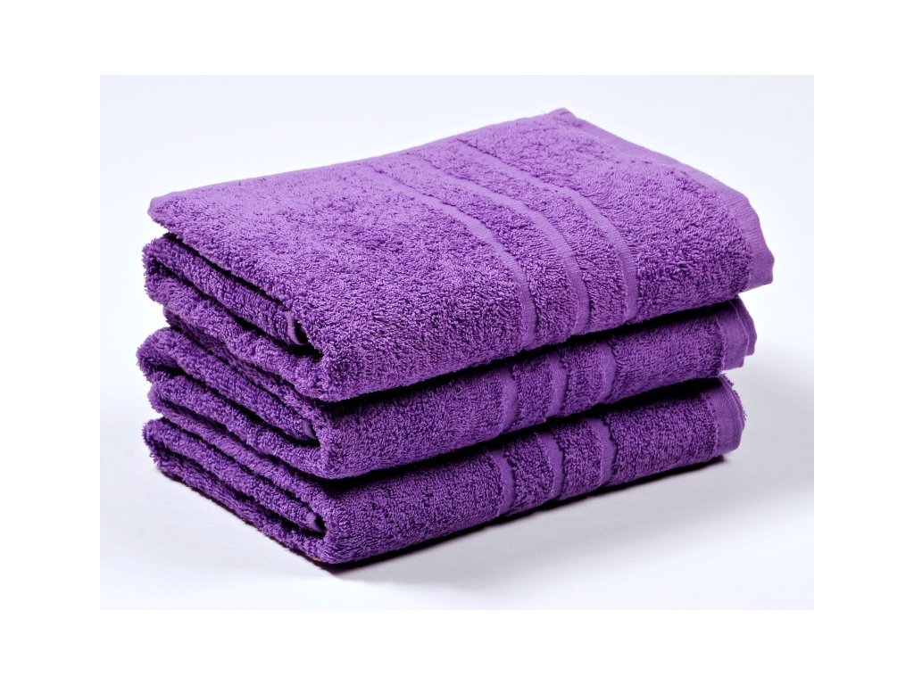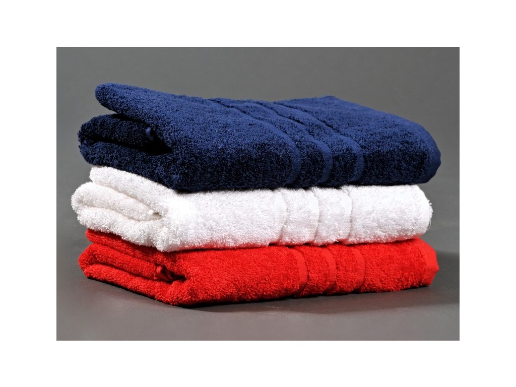 suška z kvalitního jemného froté, 100% bavlna, 500 g/m2. V krajích osušky vytkány tři proužky. Poutko na zavěšení