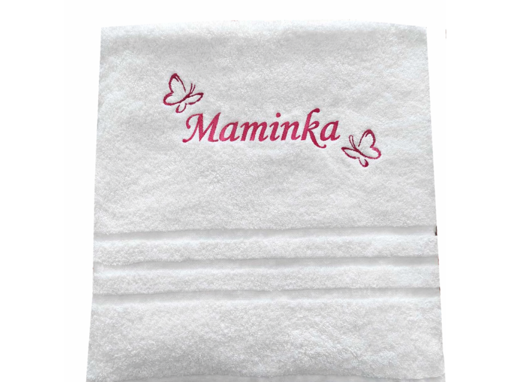 Luxusní froté ručník 50 × 100 cm s kvalitní výšivkou Maminka a jemnými motýlky je ideální dárek pro maminku k narozeninám, svátku i Dni matek. Ručník je vyroben z měkkého, vysoce savého materiálu, který zaručuje dlouhou životnost a maximální komfort. Precizní strojová výšivka dodává ručníku elegantní a osobní vzhled. Perfektní volba pro každého, kdo hledá originální, praktický a krásný dárek pro maminku.