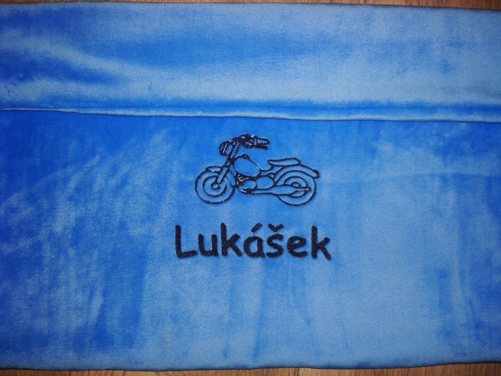 Krásná dvouvrstvá heboučká deka s výšivkou motorky - jméno vyšijeme na přání