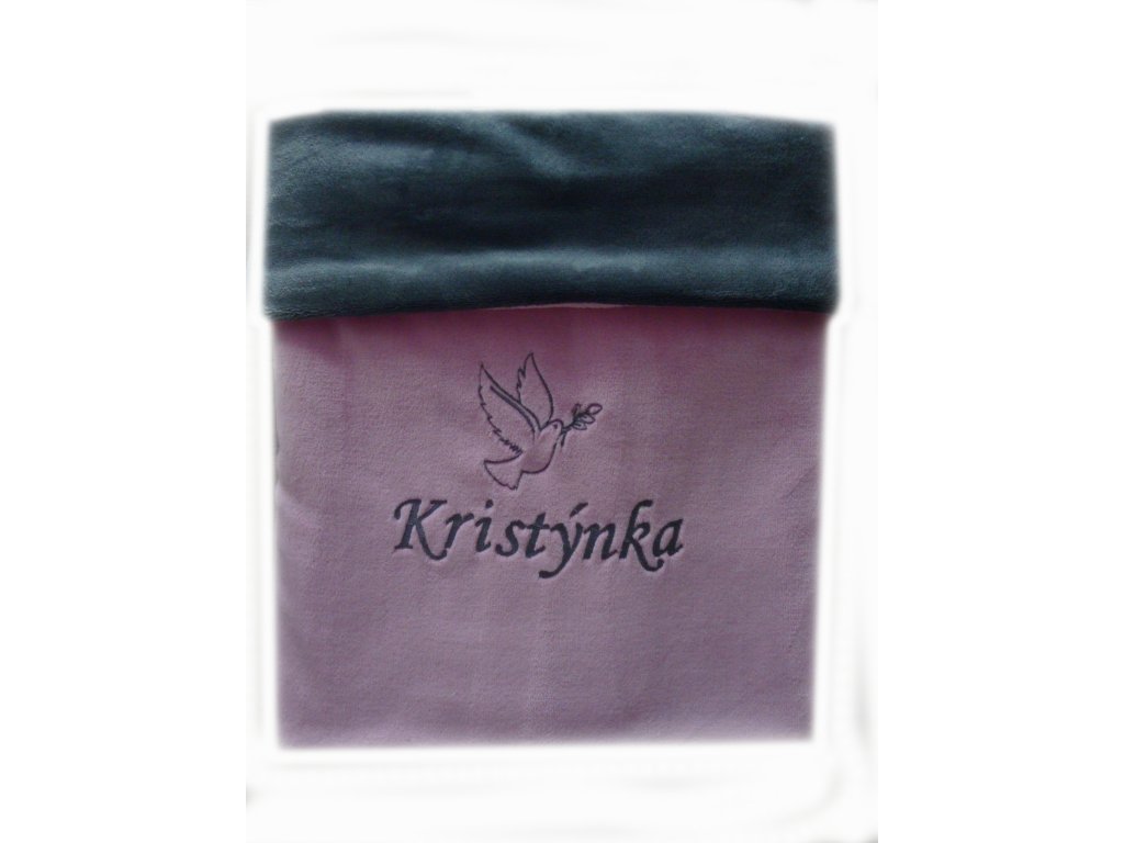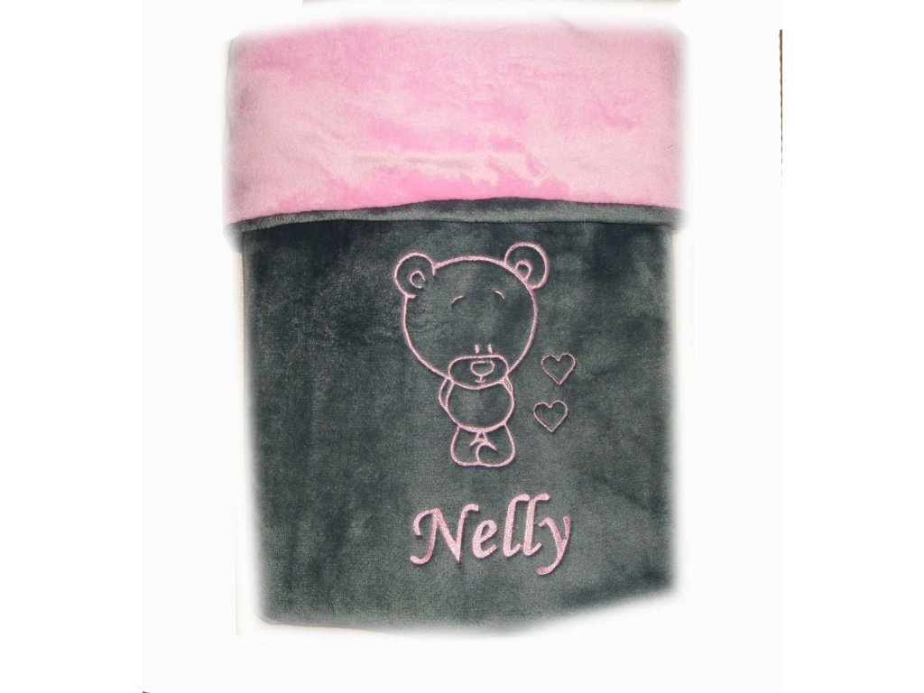 Deka pro miminko s výšivkou jména - růžová šedá 60 x 90 cm
