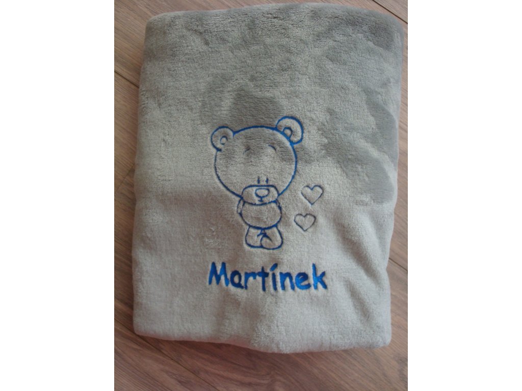 Krásná dvouvrstvá heboučká deka s výšivkou medvídka se srdíčky - jméno...