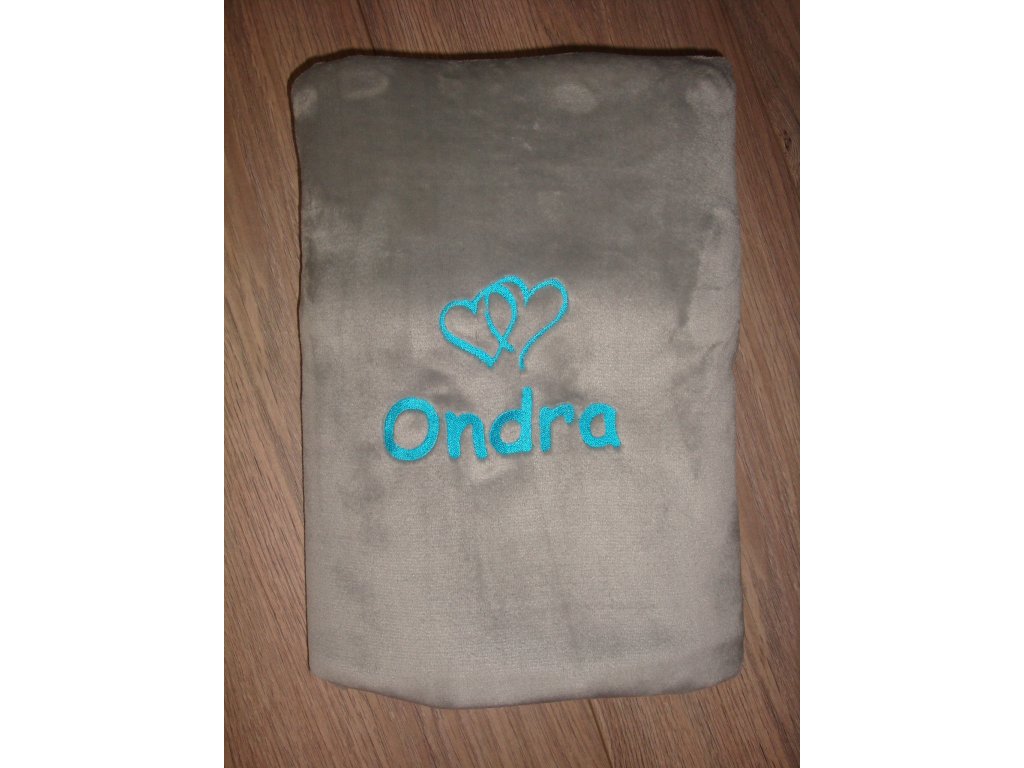 Krásná měkoučká dvouvrstvá deka s výšivkou jména na vaše přání a obrázku dle Vašeho výběru -tlapky, srdíčka, andílek, medvídek se srdíčky , motorka, ovečka , liška sovička , beruška