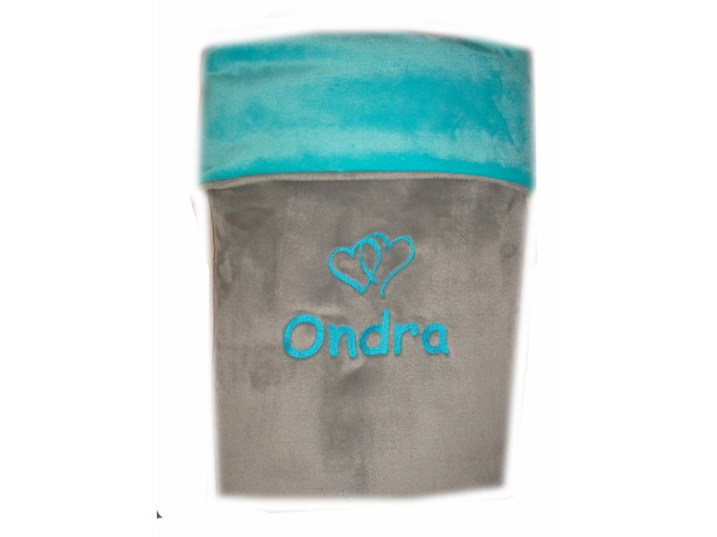 Deka pro miminko s výšivkou jména - tyrkysová světle šedá 60 x 90 cm