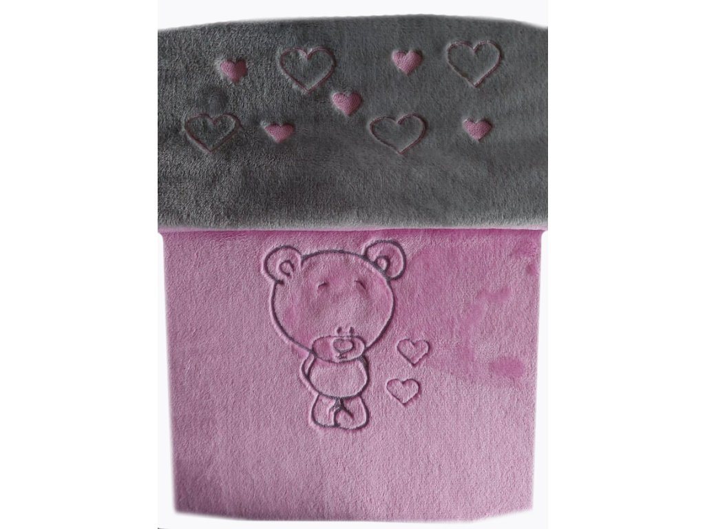 Nádherná heboučká dvouvrstvá deka s výšivkou medvídka se srdíčky z jemného soft fleece ,hřejivá, poddajná