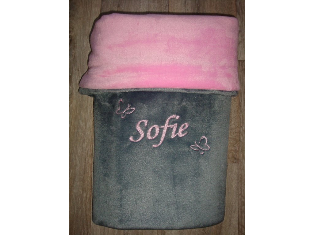Krásná dvouvrstvá heboučká deka s výšivkou srdíček - jméno vyšijeme na přání...