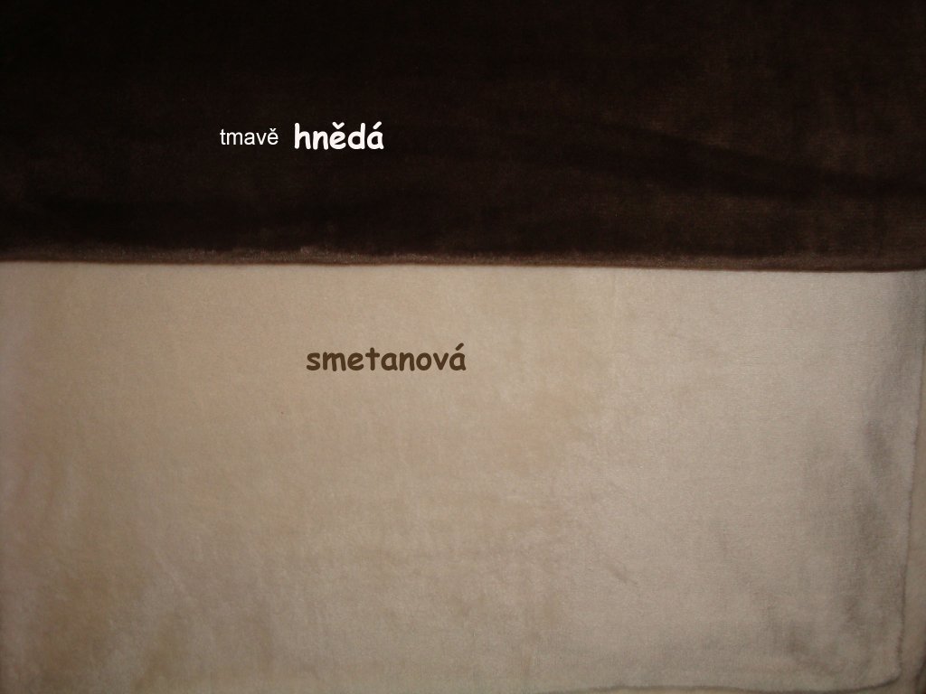 Barvy soft fleecu :bílá, smetanová, oranžová , světle šedá , šedá , tmavý antracit (černošedá), světle růžová, tmavě růžová, modrá , tmavě hnědá , mentolová
