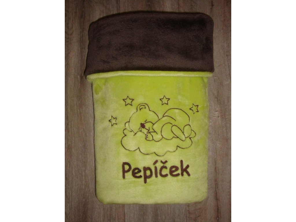 Krásná dvouvrstvá heboučká deka s výšivkou medvídka se srdíčky - jméno...