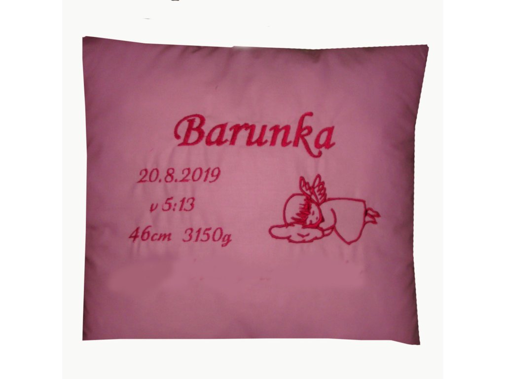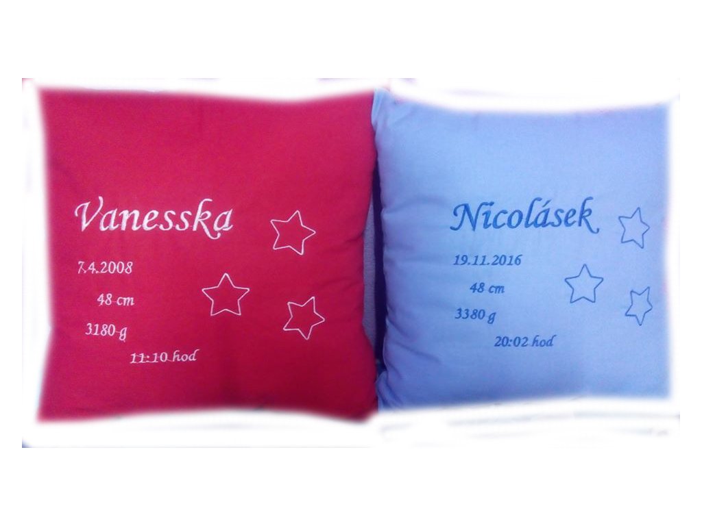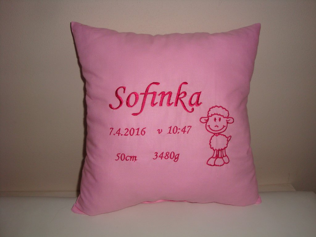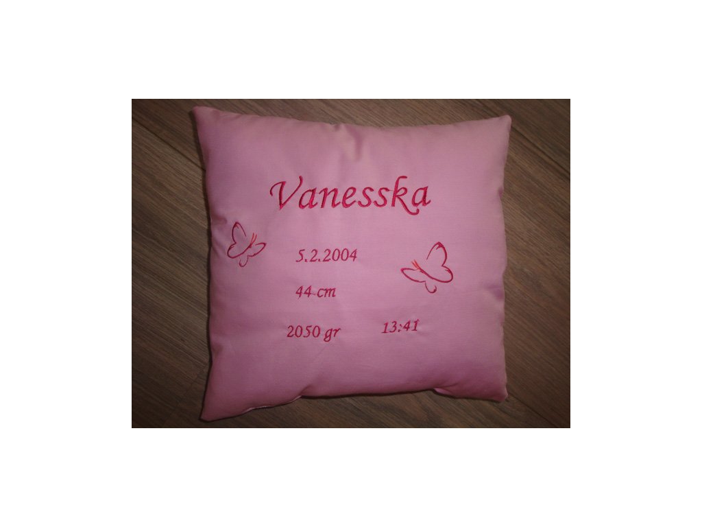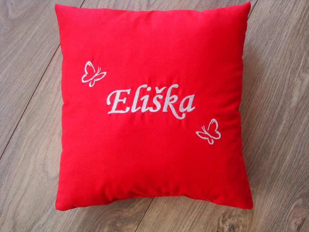 Na polštářek lze vyšít i věnování kde je příplatek 5,- za písmenko