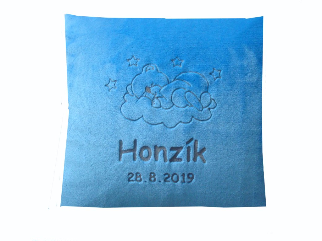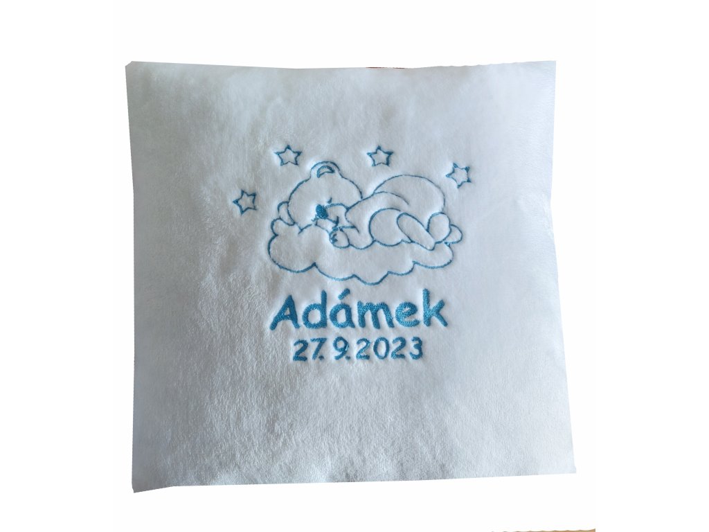 Nádherný heboučký polštářek s výšivkou obrázku jména a data narození na vaše přání