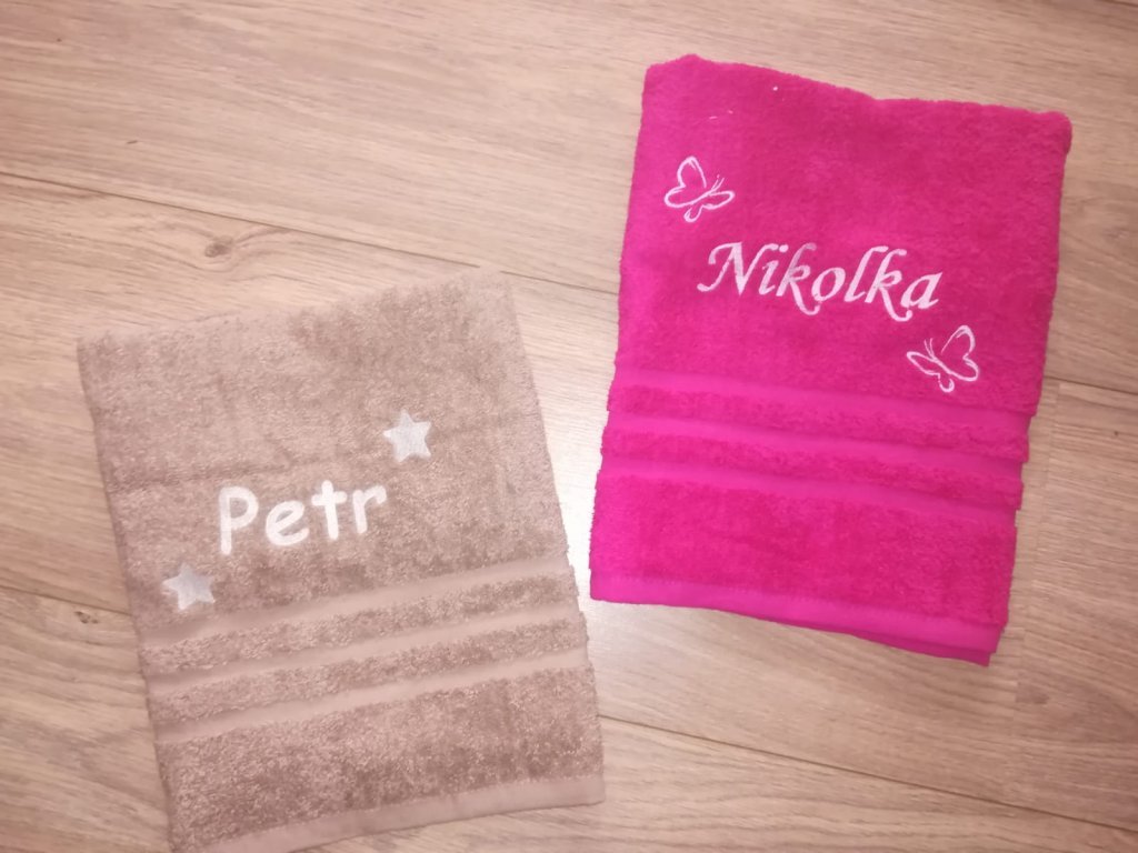 Na ručník můžeme vyšít také obrázek např. motýlky, hvězdičky, srdíčka, příplatek +40,- částku si prosím připočítejte