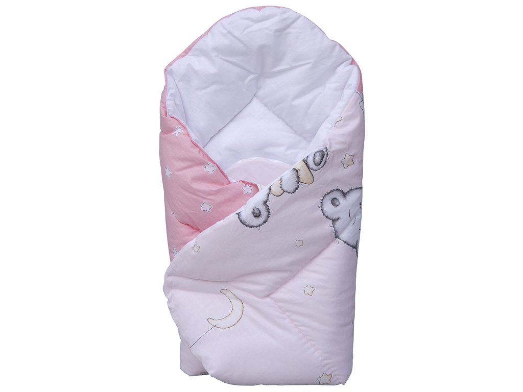 Dětská zavinovačka s jednoduchým zapínáním na suchý zip. Zavinovačka má roztomilý potisk s medvídky a noční oblohou. Růžová barva pro malé princezny.