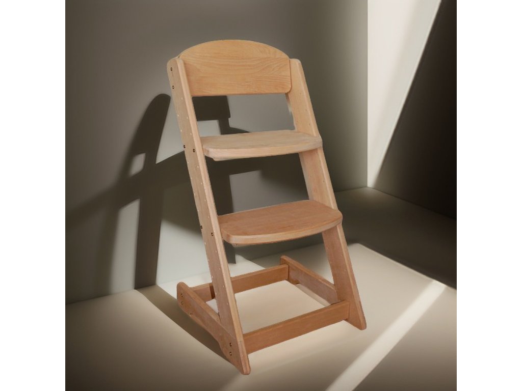 Tato židličky jsou vyrobeny z tvrdého bukového masivu, který vyniká svou odolností. Silný materiál, z kterého jsou naše rostoucí židle vyrobeny zaručuje bytelnou konstrukci, která hravě udrží i dospělou osobu a není opatřena ochranným nátěrem