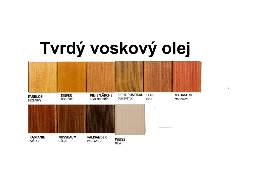 Voskový olej neuzavírá dřevo jako vodou ředitelné barvy, má hedvábný polomatný vzhled a krásně zvýrazňuje kresbu dřeva. Je odolný vůči nečistotám a snadno omyvatelný.